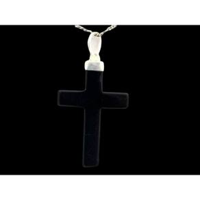 Crucifixo Pingente Pedra Onix Preto, lapidação em Cruz totalmente artesanal com polimento, montagem é feita em volto Prateado.