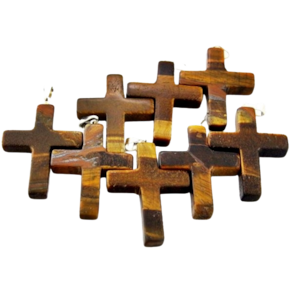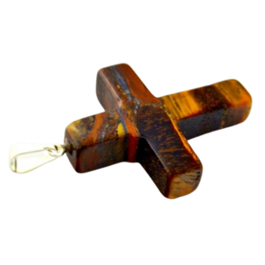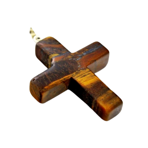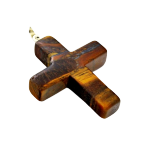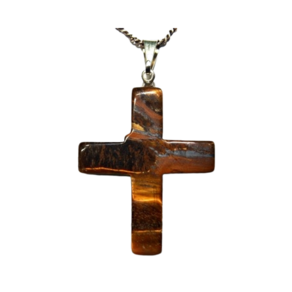Este colar de crucifixo em pedra olho de tigre natural é uma peça elegante e protetora, que transmite força. Use como amuleto.