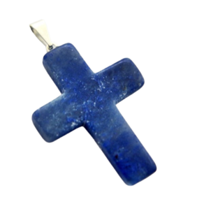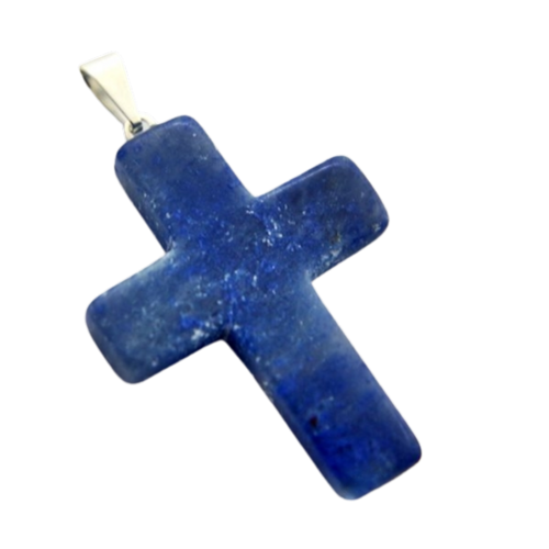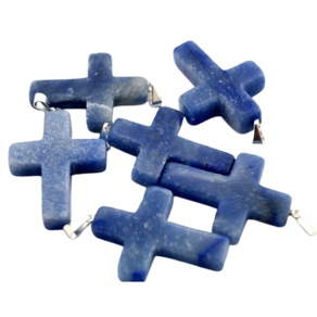 Crucifixo Pingente Pedra Quartzo Azul, lapidação em Cruz totalmente artesanal com polimento, a montagem é feita pino e presilha prateado