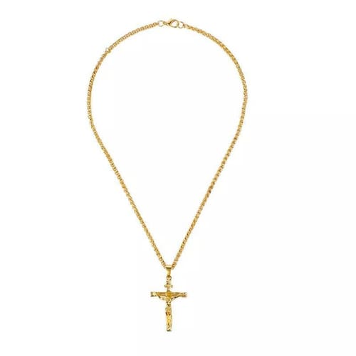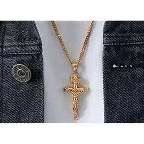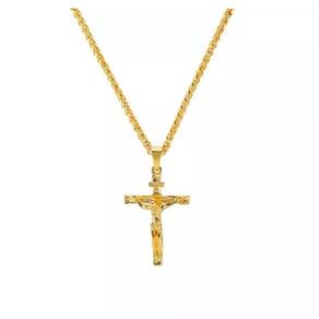Colar cruz crucifixo corrente pingente cristo jesus dourado j4142/1