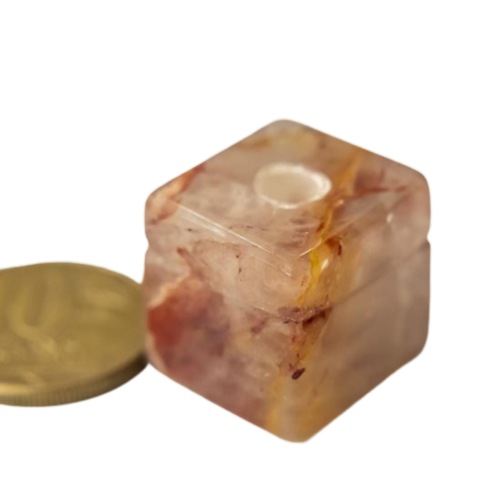 Pingente Difusor Cubo para Aromaterapia Pedra Hematoide Vermelho Ranhurado, Difusor com Lapidação Cubo Rolada com Abertura na Base e Ranhura no corpo para Ajudar na Fixação do Colar. Peça para fazer seu proprio pingente Amarrado com Cordão encerado ou arame. Pingente não Montando Pedra Genuina com origem garimpo lapidação Cubo Rolada.