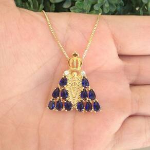 Colar da Nossa Senhora Com Manto Azul Banho de Ouro Tamanho padrão da corrente 45cm Tamanho do pingente: altura 2,5cm - comprimento 2,3cm - espessura 0,05mm Peso: 3,2g - acompanha embalagem para presentear - acompanha certificado de - temos uma equipe preparada para te auxiliar no pós venda Jhulias joias e semi joias Qualidade e Marca: Não Informado