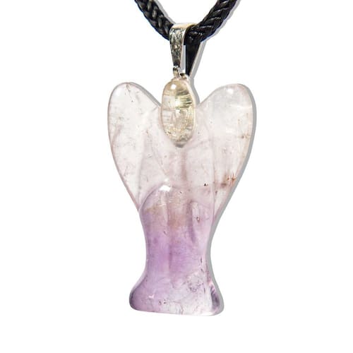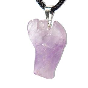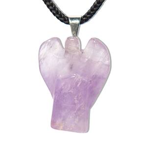 CARACTERISTICAS: Nome da Pedra: Ametista Lilás (Cristal comum)Cor da Pedra: Lilás ou roxo suaveClaridade das Pedras: Cristalizado semi-transparenteMontagem do Pingente: Anjo com pino e presilha prateadaMedidas da Pedra: 3 cm de altura x 1,5 cm de largura (aproximadamente)Peso do Pingente: 10 g(aproximadamente)Peso do Colar: 1,2 g(super leve e confortável)Comprimento do Colar: 50 cmLargura do Cordão: 3 mmFecho: Lagosta niqueladoMaterial do Cordão: Fio encerado preto com fecho ajustável