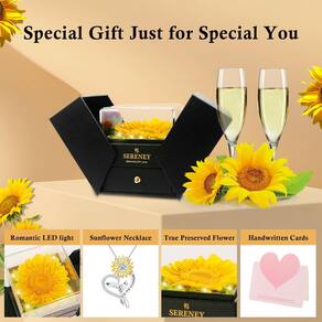 - Caixa de presente cheia de amor: Nossa caixa de presente grande de girassol meticulosamente trabalhada apresenta uma tampa de acrílico transparente, o pacote inclui girassol eterno, um colar de sol e um cartão escrito à mão sincero, cada detalhe refletindo amor e respeito, criando presentes inesquecíveis para ela.
