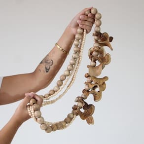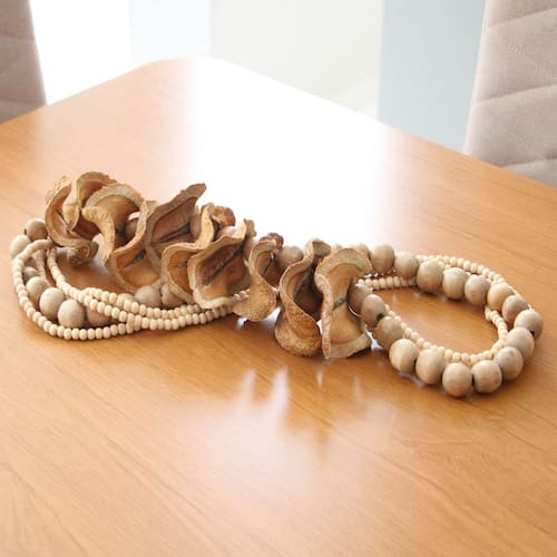 O estiloso colar Jatobá é produzido com linha encerada, contas cruas de madeira artesanal e cascas de cor e desing natural, com acabamento rústico e natural esse colar transmite a sensação de aconchego ao ambiente.