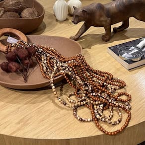 Colar De Mesa Decorativo Madeira E Semente De Acai 84cm Colar de Mesa Decorativo - Elegância e Sofisticação para Seu Espaço Inigual Decor Dê um toque final de estilo e sofisticação à sua decoração com nosso deslumbrante Colar de Mesa Decorativo da Inigual Decor. Este elegante acessório é perfeito para adicionar um charme único e personalidade à sua mesa e aparador. Detalhes Exclusivos: