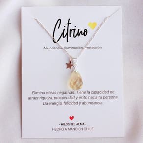 Colar de prata 92,5 com abundância de citrino l, iluminação e proteção que elimina vibrações negativas. Tem a capacidade de atrair riqueza, prosperidade e sucesso para sua pessoa. Dá energia, felicidade e abundância. 100% feito à mão. Material: corrente de prata 92,5 e 45 cm Para guardar suas joias de prata, lembre-se sempre de guardá-las em um local seco e apertado. Mantenha-o fora do contato com produtos químicos, cremes e perfumes. Use um pano especial não abrasivo para evitar arranhões e limpe-os com produtos especializados.