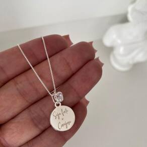 Colar de Prata Seja Forte e Corajosa com Ponto de Luz Coração