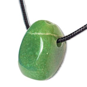 Colar Difusor Pedra Quartzo Verde Rolado Furado para Aromaterapia Pedra Quartzo Verde, Difusor com Lapidação Pedrinha Rolada com Abertura no topo e furo horizontal na lateral do corpo para passar Colar. Peça pronta para usar com Cordão encerado ou corrente. Pingente Montando acompanha cordão Pedra Genuina com origem garimpo lapidação Rolada.