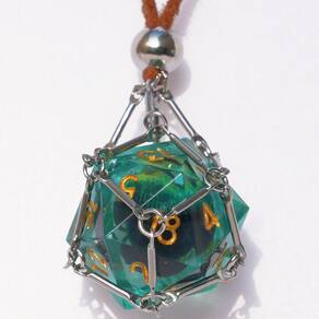 Especificações: Tipo de metal: aço inoxidável. Tipo de corrente: couro de camurça Tipo de pedra: dados de resina D20 Peso: 12 ~ 15 g Comprimento da corda: 80 ~ 85 cm Tamanho dos dados: 26 ~ 28 mm - ·Este colar de dados D20 removível - O dado tem um olho suspenso em um líquido, então flutua livremente e magicamente encontra uma maneira de olhar para cima, não importa como ele caia ou gire. - ·Basta retirar seus dados D20 da gaiola e rolar. - Nosso colar de gaiola de dados é o presente perfeito para qualquer fã de jogos de RPG. Ele armazenará seus dados D20 favoritos, aquele que traz toda a sorte. - · Peso: 12 ~ 15 g Comprimento do colar: 85 cm