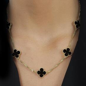 Colar Dourado 5 Trevos Preto Aurearosa - Semi Joias Na AureaRosa, você encontra peças únicas e cheias de elegância, perfeitas para complementar seu estilo com brilho e sofisticação. Nossas semi joias são cuidadosamente selecionadas, combinando design moderno e alta qualidade para valorizar cada look. Banho de Ouro 10 Milésimos - Peças banhadas a ouro com um toque delicado e brilhante. Para maior durabilidade, recomendamos evitar contato com água, perfumes e produtos químicos. de 2 Anos - Toda peça possui direto com a fábrica, assegurando qualidade e satisfação. Presenteie-se ou surpreenda quem você ama com joias que trazem beleza e confiança. Aurearosa - Brilho que Conquista Marca: Não Informado