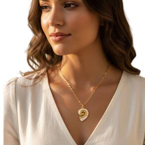 Colar sofisticado em aço inoxidável com pingente em formato de concha estilizada, ideal para quem aprecia o estilo praiano com um toque moderno. O design combina dourado brilhante com detalhes brancos, criando um visual elegante e delicado. Perfeito para compor looks casuais ou mais refinados.