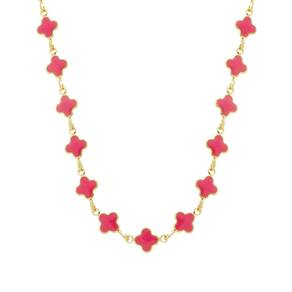 Colar Dourado De Trevos Rosas
