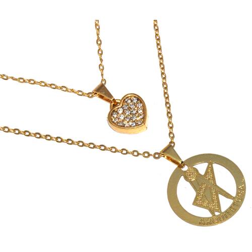 Corrente menor mede aproximadamente 40 Cm, corrente maior mede aproximadamente 45 Cm. Pingente Maior mede aproximadamente 2 Cm.