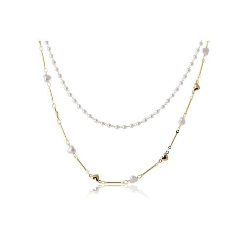 O Colar Duplo com Pérolas e Corações Dourados é incrível! Moderno e atemporal, esse acessório promete deixar seus momentos mais completos. Use e abuse da sua criatividade fazendo combinações e montando um mix que tem a sua cara. Folhado em ouro 18k.