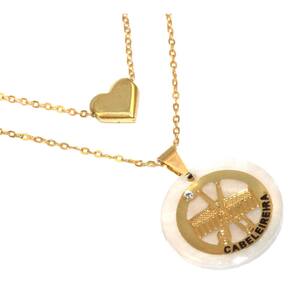 Corrente menor mede aproximadamente 40 Cm, corrente maior aproximadamente 45 Cm. Pingente maior aproximadamente 2 Cm. Quando comprar peças folheadas, duas coisas devem ser levadas em consideração, a primeira que quanto mais cuidado você ter, mais elas irão durar e que um dia infelizmente elas irão perder o brilho e a cor, afinal não são de ouro maciço. Cuidados: Não pode molhar, praticar exercícios físicos ou trabalhos forçados, suor excessivo, utilizar para dormir. Quando for utilizar qualquer tipo de cosméticos, cremes, perfume, coloque a peça folheada somente após 30 minutos. Aconselhamos a utilizar seu folheado mais para sair. Assim você irá diminuir os riscos que as citações acima ocorram. Quanto mais cuidar, mais irá durar. Nossa é de 3 meses quanto a defeitos de fábrica. Quando comprar peças folheadas, duas coisas devem ser levadas em consideração, a primeira que quanto mais cuidado você ter, mais elas irão durar e que um dia infelizmente elas irão perder o brilho e a cor, afinal não são de ouro maciço. Cuidados: Não pode molhar, praticar exercícios físicos ou trabalhos forçados, suor excessivo, utilizar para dormir. Quando for utilizar qualquer tipo de cosméticos, cremes, perfume, coloque a peça folheada somente após 30 minutos. Aconselhamos a utilizar seu folheado mais para sair. Assim você irá diminuir os riscos que as citações acima ocorram. Quanto mais cuidar, mais ira durar. Nossa é de 3 meses quanto a defeitos de fábrica.
