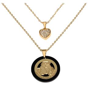 Corrente menor mede aproximadamente 40 Cm, corrente maior aproximadamente 45 Cm. Pingente maior aproximadamente 2 Cm, pingente coração aproximadamente 1 Cm.