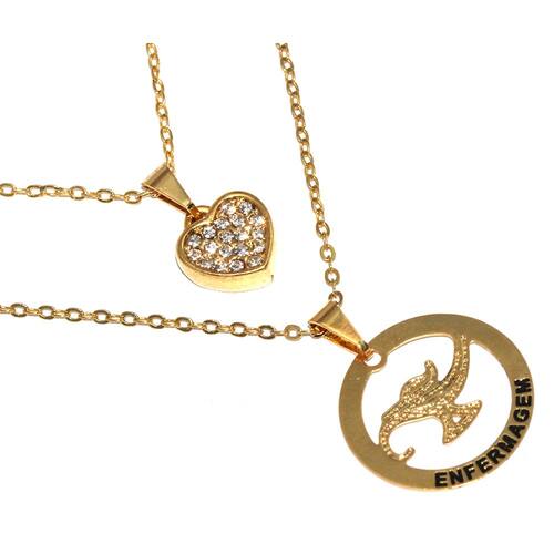 Colar Duplo Minha Profissão Enfermagem Enfermeira Folheado