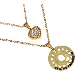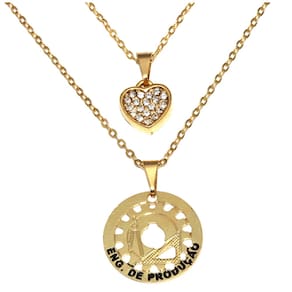 Corrente Menor mede aproximadamente 40 Cm, corrente maior aproximadamente 45 Cm. Quando comprar peças folheadas, duas coisas devem ser levadas em consideração, a primeira que quanto mais cuidado você ter, mais elas irão durar e que um dia infelizmente elas irão perder o brilho e a cor, afinal não são de ouro maciço. Cuidados: Não pode molhar, praticar exercícios físicos ou trabalhos forçados, suor excessivo, utilizar para dormir. Quando for utilizar qualquer tipo de cosméticos, cremes, perfume, coloque a peça folheada somente após 30 minutos. Aconselhamos a utilizar seu folheado mais para sair. Assim você irá diminuir os riscos que as citações acima ocorram. Quanto mais cuidar, mais ira durar. Nossa é de 3 meses quanto a defeitos de fábrica. Ean: 7909389991417