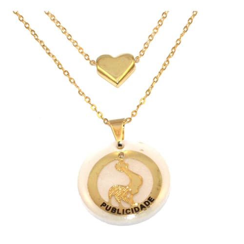Corrente menor mede aproximadamente 40 Cm, corrente maior aproximadamente 45 Cm. Pingente maior aproximadamente 2 Cm.
