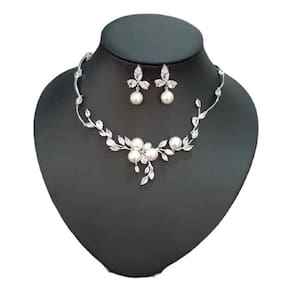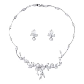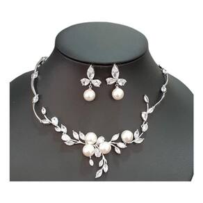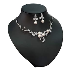 Colar e brinco banhados a ródio com pedras de zircônia e pérolas Shell. Super luxuoso. Colar com 45 cm de comprimento. Brinco com 2,2 cm de comprimento. Acompanha caixa de presente. Semi joia de excelente qualidade Pedras muito brilhantes Ideal para noiva, debutantes, formandas e festas noturnas em geral. Ean: 7898847279214