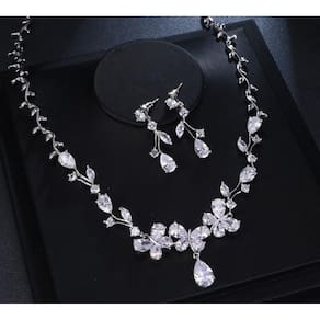 Colar e brinco banhados a ródio com pedras de zircônia. Super luxuoso. Colar com 48 cm de comprimento. Brinco com 3,2 cm de comprimento. Acompanha caixa de presente. Semi joia de excelente qualidade Pedras muito brilhantes Ideal para noiva, debutantes, formandas e festas noturnas em geral.