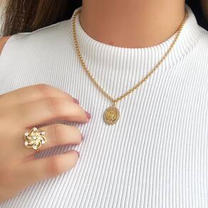 Dados técnicos: Semijóia banhada a ouro Comprimento: 45cm mais 5cm de extensor Tamanho do pingente: 2cm Marca: Lys Lazuli Garantia: 2 anos (Esta garantia cobre apenas o banho. Quebra, amassado, arranhado ou mau uso não estão cobertos por esta garantia) Peça antialérgica Classe da peça: Semijoia