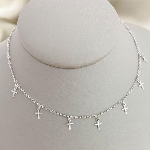 Colar Elo Português com Pingentes de Cruz em Prata 925
