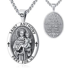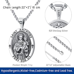 - Inscrição: "SAINT OF MIRACLES LOST ARTICLES HELP ME ALL THINGS ARE FOUND ". Pingente de prata esterlina 925 sólida de verdade, frente e verso, sem grafite, sem níquel, sem cádmio e amigo da pele. Aprovado na inspeção SGS. Adequado para pessoas com pele sensível.