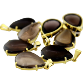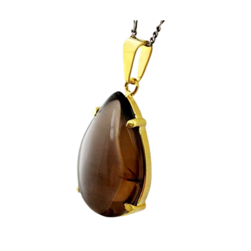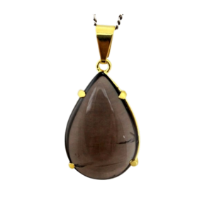 Colar com gota de quartzo fumê, uma pedra elegante e versátil que combina com qualquer look. Adicione um toque de mistério ao seu visual.