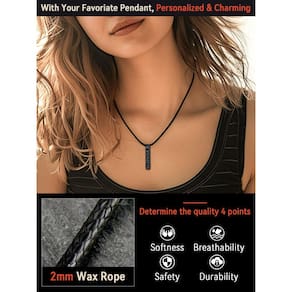 ? Joias FaithHeart ----Presentes de fé exclusivos e de qualidade. Esperamos que você encontre um item devocional significativo para valorizar por toda a vida. Um símbolo de devoção, compromisso e amor, oferecemos colares, pulseiras, anéis e outros para durar uma vida inteira. Nossos produtos inspiradores iluminarão o dia de quem os receber. Informações da embalagem: 1 colar de corrente. 1 pano de limpeza. 1 caixa de presente. ? Como manter os produtos - Mantenha longe de água e suor. - Evite a exposição a produtos químicos, locais com espigões. - Limpe com um pano macio seco quando tiver manchas. - ?Impressionante colar de couro trançado?-- Feito com corda de cera de alta qualidade e um fecho de aço inoxidável 100% sólido, este colar é durável e resistente a manchas ou ferrugem. Oferece uma estética minimalista que é perfeita para quem aprecia a simplicidade. A corrente de couro é projetada para ser confortável e adequada para peles sensíveis. - ?Excelente artesanato e cordão forte?-- Largura do colar de cordão de couro: 2 mm ou 3 mm. Comprimento do cordão: 16/18/20/22/24/26/28/30 polegadas. Com seu design simples e elegante, este colar de cordão complementa qualquer roupa, tornando-o um acessório versátil para homens e mulheres. - ?Incrível corda à prova d'água?-- Este cordão de colar possui uma corrente de corda à prova d'água com excelente respirabilidade. É feito de materiais autênticos que são seguros para grafite, níquel e cádmio. Você pode usá-lo com confiança durante a natação, banho ou atividades esportivas. O estilo minimalista garante que ele permaneça na moda por muitos anos. - ?Colar de cordão diário para homens/mulheres?-- Disponível nas cores clássicas preto ou marrom, este cordão oferece conforto ideal quando utilizado ao redor do pescoço. Pode ser utilizado sozinho como um colar, embrulhado como uma pulseira ou combinado com seu pingente favorito, permitindo personalização e adicionando um toque de charme a qualquer roupa. - ?Presente ideal com embalagem delicada?-- Vem com uma caixa de presente preta. Suporte personalizado Esta corda de colar simples é perfeita para presentear em aniversários, feriados, ou qualquer ocasião especial. Seu design clássico diário e versatilidade fazem dele um presente de joia exclusivo.