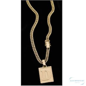 CORRENTE GRUMET DUPLO FECHO LATERAL DUPLO (7MM) & PINGENTE (LETRA) PERSONALIZADO (MEDIO) - BANHADO EM OURO 18K