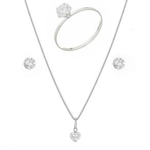 Colar Feminina 50cm Prata 925 Conjunto Brinco Pingente Anel - Tamanho: 19