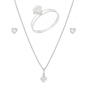 Esse kit corrente, anel e brincos, coração de Prata é uma joia excelente para mulheres, um conjunto charmoso, linda e combina com qualquer estilo de roupa e cai bem em qualquer evento como cultos, festas, reuniões e, inclusive, no dia a dia.