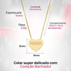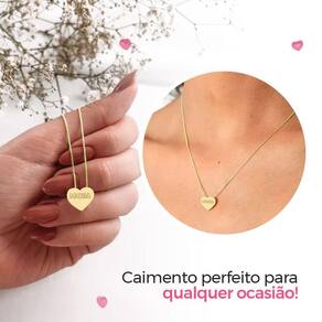 Colar feminino aço dourado + pingente personalize coração Kit presente personalizado orizom maria - colar em aço inoxidável dourado com pingente de coração e caixa premium personalizável