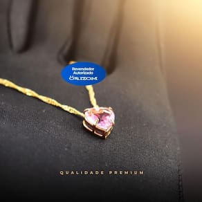 Design Encantador: O pingente em forma de coração, acentuado por uma zircônia rosa delicada, destaca-se pela sua beleza cativante.