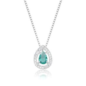 Material: Prata 925 de alta qualidade, oferecendo durabilidade e um acabamento impecável. Pedras: Brilhantes cuidadosamente cravejados ao redor de uma pedra central verde água, criando um contraste encantador Design: Pingente em formato de gota que realça a beleza da pedra central e adiciona um toque de elegância Acabamento: Superfície polida para um brilho intenso e duradouro Comprimento da Corrente: 45 cm