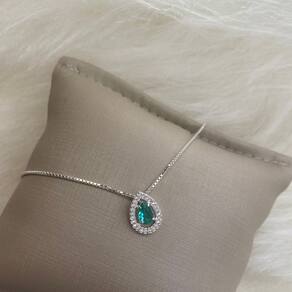 Este colar é a escolha perfeita para ocasiões especiais ou para adicionar um toque de luxo ao seu dia a dia. A combinação da pedra verde água com os brilhantes cria uma peça única e sofisticada, ideal para quem aprecia joias elegantes e exclusivas.