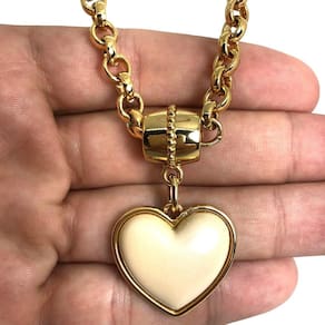 - O tamanho padrão da corrente é 45cm, mas ela tem um fecho que permite abrir a corrente para ajustar o tamanho ao seu gosto ou para retirar o pingente;