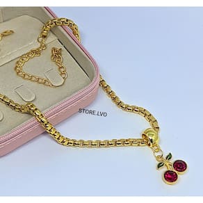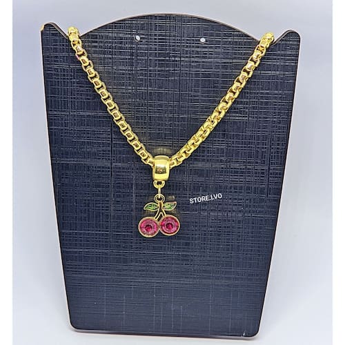 Informações : Corrente veneziana dourada! Com pingente de cereja! Acabamento em fecho lagosta! Tamanho do Colar: 45 cm +5 cm Extensor Tamanho do Pingente Cereja : 22mm Banho do Material: Verniz Italiano com Maior durabilidade do seu Brilho e nao perde sua Cor Fecho do Colar : Bóia Elos da Corrente: Malha dupla Veneziana Grossa Genero : Feminino Garantia : contra defeito ( e não Mal Uso )
