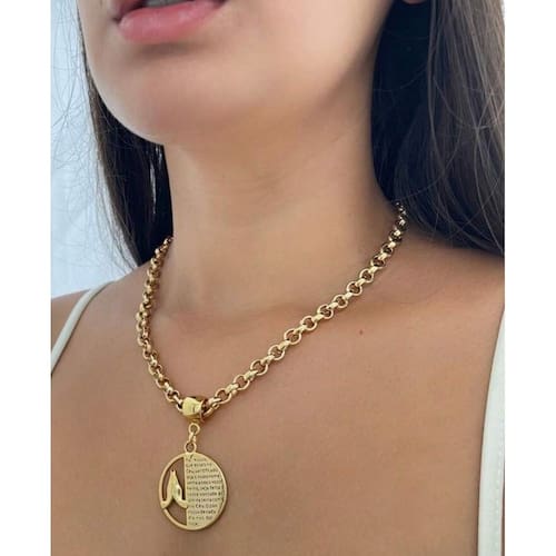 Colar Feminino Corrente Elo Português com Pingente Medalha Oração Pai Nosso Mão Folheado Ouro dOURADO BS. Garantia apenas para escurecimento. A garantia não cobre defeitos de mal uso, que ocasione a quebra de partes das peças.