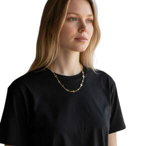 Descubra o Colar Feminino Cruz 45 Cm Semi Jóia Juliana Prado, uma peça que une estilo, significado e versatilidade. Com design delicado e moderno, este colar em banho dourado apresenta múltiplas cruzes ao longo da corrente, simbolizando fé e proteção de forma elegante. Seu comprimento de 45 cm é perfeito para usar sozinho ou combinar com outras joias, valorizando qualquer look do dia a dia ou ocasiões especiais. Produzido com materiais de alta qualidade, garante durabilidade e resistência ao desgaste, mantendo o brilho por muito mais tempo. Uma escolha certeira para mulheres que buscam um acessório com significado e sofisticação.Eleve sua expressão pessoal com um acessório que traduz personalidade e elegância.
