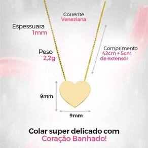 Adquira agora mesmo o Colar Placa Coração e adicione um toque romântico e sofisticado ao seu estilo. Presenteie aquela pessoa querida com uma joia que transmite sentimentos sutis e genuínos. Não perca a oportunidade de destacar-se com este acessório encantador. Compre já e deslumbre-se com o encanto deste colar incrível!