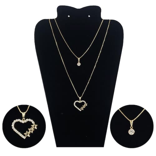 Colar Feminino Duplo Dourado Folheado a Ouro 18k 3 Corações