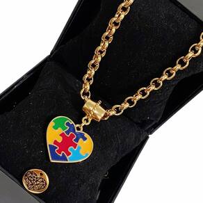 - O tamanho padrão da corrente é 45cm, mas ela tem um fecho que permite abrir a corrente para ajustar o tamanho ao seu gosto ou para retirar o pingente;