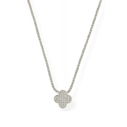 Colar Feminino Folheado Prata Cordão Cravejado Com inspiração Vg - Prata