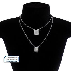 corrente elo 1 por 1 e placa pequena desenhada a laser são jorge guerreiro e sagrado coração de jesus confeccionado em aço inox de alta qualidade. Além de estilo e beleza, possuem alta durabilidade. Escapulário confeccionado em aço inox de alta qualidade. Além do estilo, beleza, possuem alta durabilidade e anti-alérgico. Nossas peças em aço inox 316l:-nunca fica preta - nunca oxida - nunca escurece - pode usar no banho, no mar e na piscina a vontade - pode usar na academia, na corrida e qualquer atividade - antialérgico - brilho de qualidade - não risca facilmente - comprimento da corrente: 60 cm 30 cm cada lado - altura da placa: 1,42 cm - largura da placa: 1,10 cm - embalagem enviamos saquinho de veludo de jóias para presente