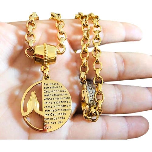 - O tamanho padrão da corrente é 45cm, mas ela tem um fecho que permite abrir a corrente para ajustar o tamanho ao seu gosto ou para retirar o pingente;
