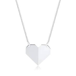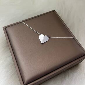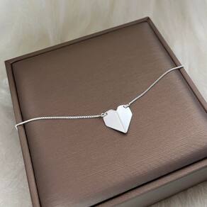 Este colar encantador é uma combinação perfeita de simplicidade e criatividade, com um pingente em forma de coração que imita a arte das dobraduras. É uma peça sofisticada e moderna, perfeita para destacar qualquer look.
