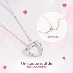 - Pingente em aço inox adornado com strass transparente em forma de coração, trazendo elegância e brilho ao acessório.